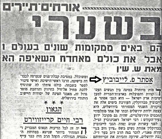Article mentions Israel Rabinowitz, her father.